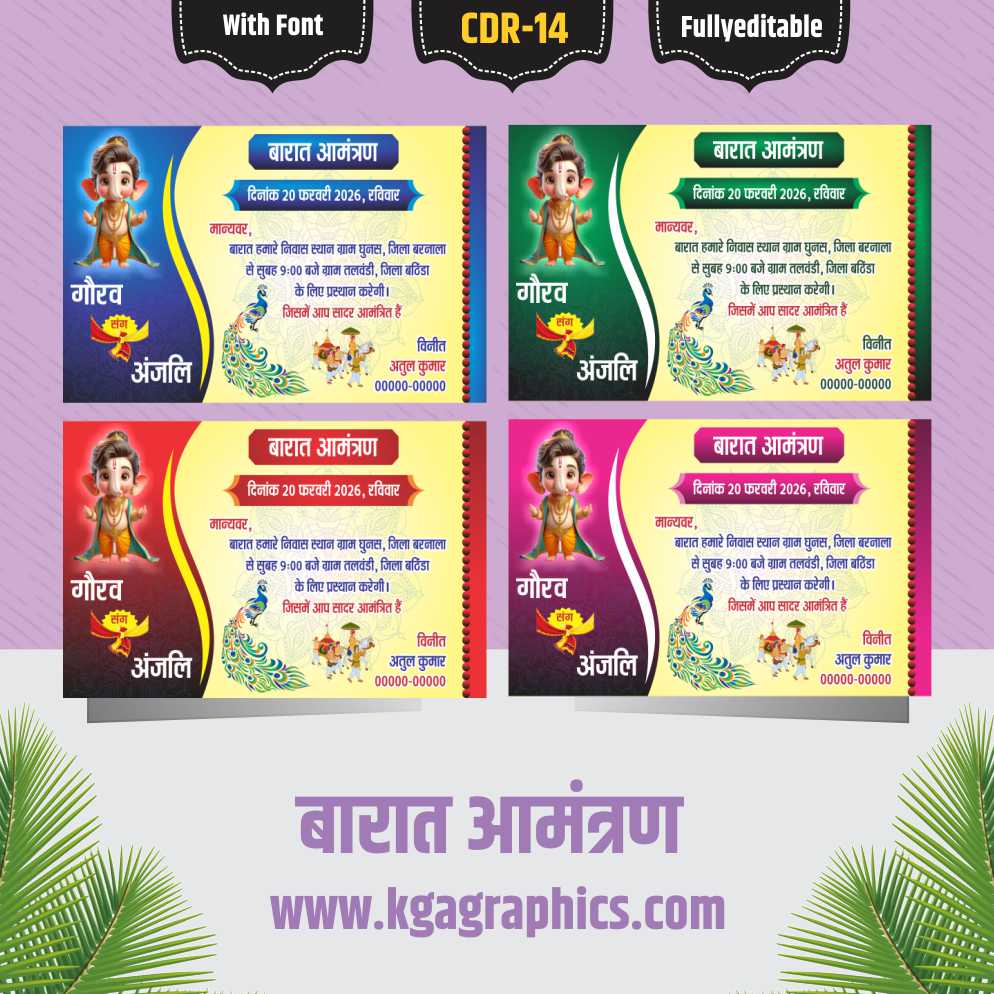 Barat Invitation Card Design Hindi in corel draw file. this file is fully editable.