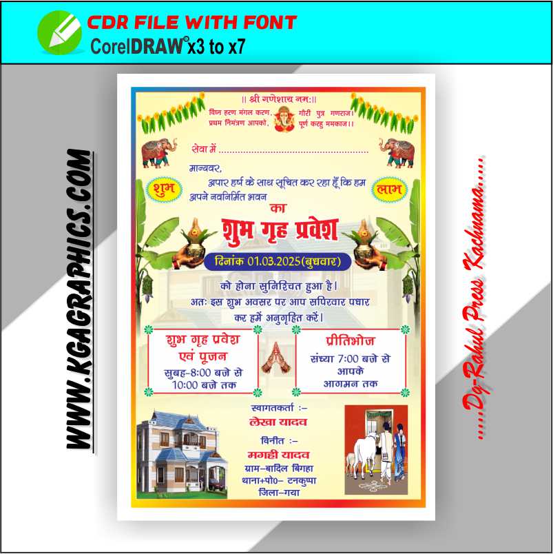 Girah Pravesh Amantran Card Design in corel draw file. this file is fully editable.