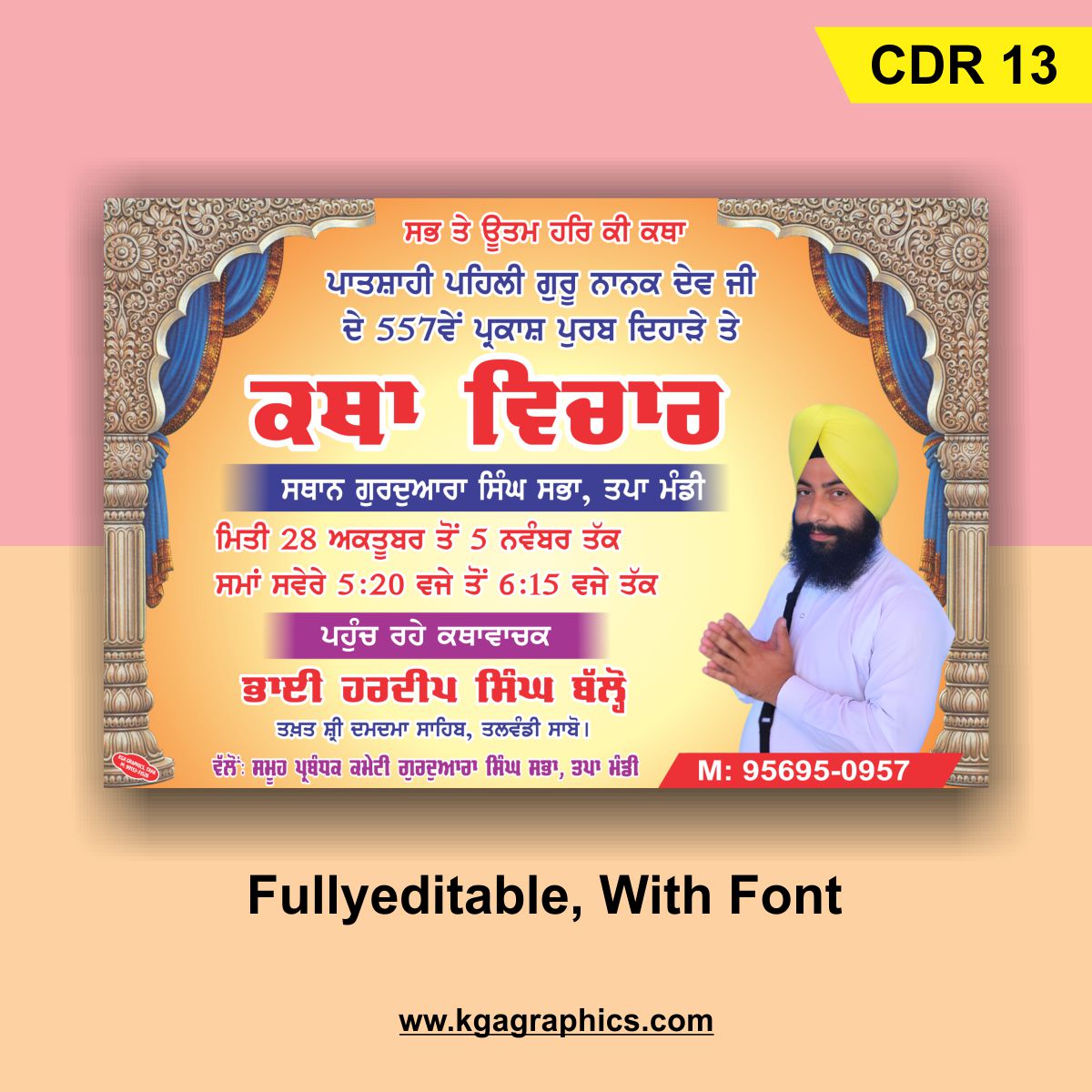 Katha Banner Design ਇਹ ਡਿਜ਼ਾਇਨ ਗੁਰੂ ਨਾਨਕ ਦੇਵ ਜੀ ਦੇ ਪ੍ਰਕਾਸ਼ ਪੁਰਬ ਨੂੰ ਰੱਖਦੇ ਹੋਇਆ ਕਥਾ ਵਿਚਾਰ ਦੇ ਸਮਾਗਮ ਲਈ ਤਿਆਰ ਕੀਤਾ ਗਿਆ ਹੈ ਇਹ file ਤੁਹਾਨੂੰ corel draw version 13 ਦੇ ਵਿੱਚ ਮਿਲੇਗੀ ਅਤੇ ਨਾਲ ਹੀ ਤੁਹਾਨੂੰ ਇਸ ਵਿੱਚ ਵਰਤੇ ਗਏ ਸਾਰੇ ਫੋਂਟ ਵੀ ਦਿੱਤੇ ਜਾਣਗੇ ਇਸ file Katha Banner Design ਨੂੰ ਤੁਸੀਂ ਹੋਰ ਕਿਸੇ ਵੀ ਡਿਜ਼ਾਇਨ ਲਈ ਵਰਤ ਸਕਦੇ ਹੋ ਜਾਂ ਫਿਰ ਤੁਸੀਂ ਕਥਾ ਵਿਚਾਰ ਲਈ ਬਣਾ ਰਹੇ ਕਿਸੇ ਹੋਰ ਡਿਜ਼ਾਇਨ ਵਿੱਚ ਇਸ ਦੀ ਵਰਤੋਂ ਕਰ ਸਕਦੇ ਹੋ ਕਥਾ ਸਮਾਗਮ ਜਾਂ ਹੋਰ ਧਾਰਮਿਕ ਪ੍ਰੋਗਰਾਮਾਂ ਲਈ ਯੂਜ ਹੋਣ ਵਾਲੇ ਗੇਟ ਡਿਜਾਇਨ ਵੀ ਇਸ ਵਿੱਚ ਸ਼ਾਮਿਲ ਹਨ ਜੋ ਪੀਐਨਜੀ ਫਾਰਮੈਟ ਦੇ ਵਿੱਚ ਹੈ , ਮੈਨੂੰ ਆਸ ਹੈ ਕਿ ਇਹ file ਤੁਹਾਡੇ ਬਹੁਤ ਹੀ ਕੰਮ ਆਵੇਗੀ and ਤੁਹਾਡੇ ਕੰਮ ਨੂੰ ਆਸਾਨ ਬਣਾਵੇਗੀ