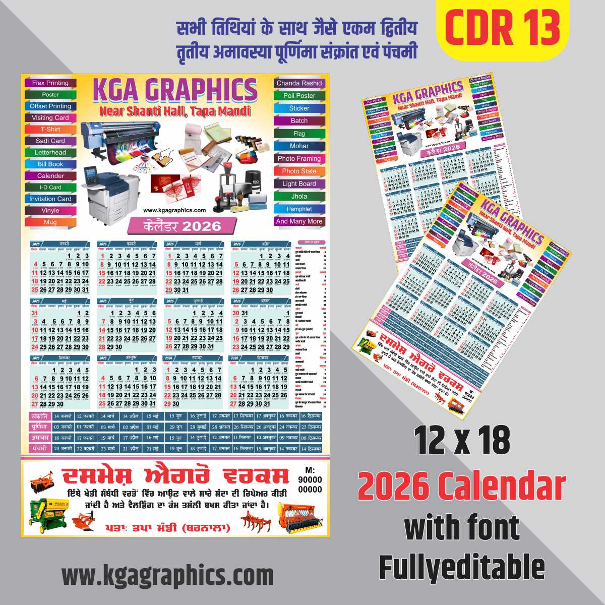 Latest 2026 Calendar Design सभी तिथियां के साथ जैसे एकम द्वितीय तृतीय अमावस्या पूर्णिमा संक्रांत एवं पंचमी|