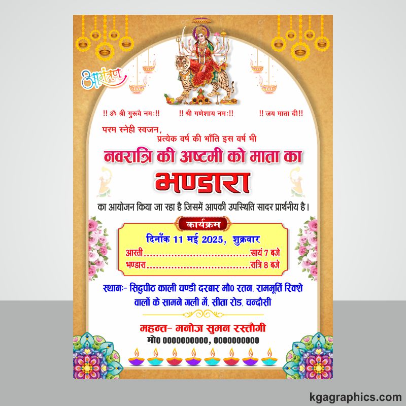Mata Rani Ka Bhandara Invitation Card Design CDR File