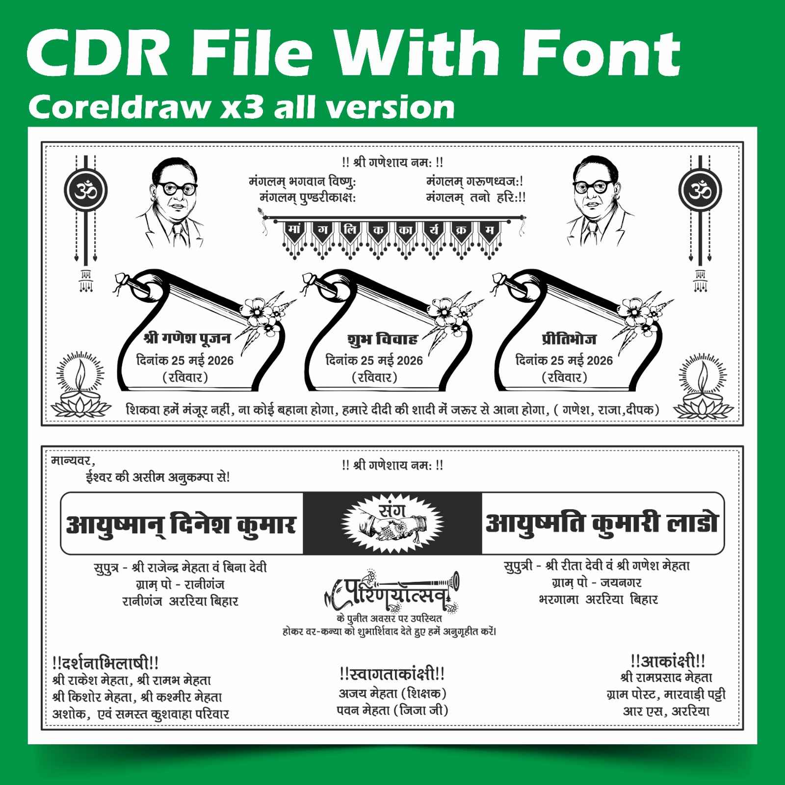 New Ambedkar Wedding Card Shadi Card Design in corel draw file. this file is fully editable.