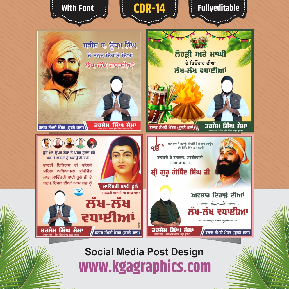 ਇਹ ਫਾਇਲ ਤੁਹਾਨੂੰ ਕੋਰਲ ਡਰਾਅ ਦੇ ਵਰਜ਼ਨ 14 ਵਿੱਚ ਮਿਲੇਗੀ ਪਰ ਤੁਸੀਂ ਇਸ ਫਾਇਲ ਨੂੰ 14 ਤੋਂ ਉਪਰ ਕਿਸੇ ਵੀ ਵਰਜ਼ਨ ਵਿੱਚ ਖੋਲ ਸਕਦੇ ਹੋ। ਇਸ ਫਾਇਲ ਵਿੱਚ ਵਰਤੇ ਗਏ ਸਾਰੇ ਫੋਂਟ ਫਾਇਲ ਦੇ ਨਾਲ ਦਿੱਤੇ ਗਏ ਹਨ । ਇਹ ਫਾਇਲ ਪੂਰੀ ਤਰ੍ਹਾਂ ਅਡਿਟਏਬਲ ਹੈ ਤੁਸੀ ਫੋਂਟ, ਫੋਟੋ, ਟੈਕਸ, ਵਿਕਟਰ ਆਦਿ ਸਭ ਕੁੱਝ ਬਦਲ ਸਕਦੇ ਹੋ। ਜੇਕਰ ਤੁਸੀਂ ਬੈਕਗਰਾਊਂਡ ਦਾ ਰੰਗ ਬਦਲਣਾਂ ਚਹੁੰਦੇ ਹੋ ਉਹ ਵੀ ਬਦਲ ਸਕਦੇ ਹੋ। Social Media Post Best Design ਫਾਇਲ ਤੁਸੀ ਕਿਸੇ ਲਈ ਵੀ ਵਰਤ ਸਕਦੇ ਹੋ, ਤੁਸੀਂ ਅਪਣੇ ਮੁਤਾਬਕ ਇਸਨੂੰ ਪੰਜਾਬੀ, ਹਿੰਦੀ, ਅੰਗਰੇਜ਼ੀ, ਮਰਾਠੀ, ਉਰਦੂ ਆਦਿ ਕਿਸੇ ਵੀ ਭਾਸ਼ਾ ਵਿੱਚ ਅਡਿਟ ਕਰ ਸਕਦੇ ਹੋ। ਫਇਲ ਨੂੰ ਡਾਊਨਲੋਡ ਕਰਨ ਲਈ ਦਿੱਤੇ ਸਟੈਪਾ ਨੂੰ ਫੋਲੋ ਕਰੋ।